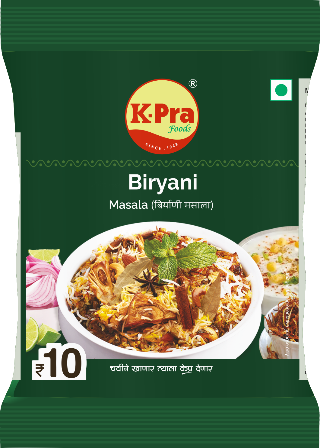 K-Pra Biryani Masala is a perfect blend of quality raw material, roasted and grinded to give you an authentic taste