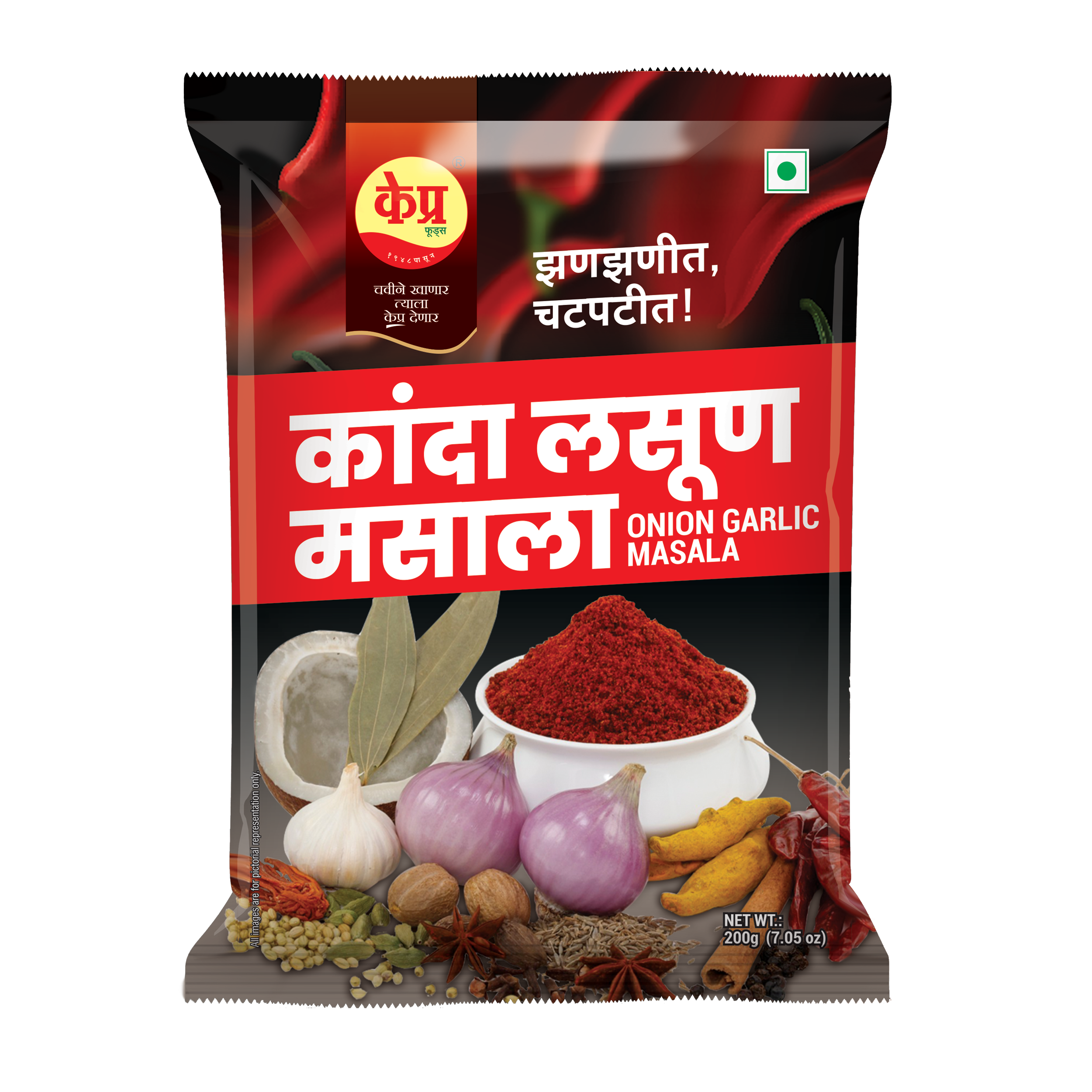 K-Pra Kanda-Lasun Masala is a zesty mix of Onion and Garlic that adds flavor to everyday dishes like, curries, egg burji, bharli vaangi, bharli Bhendi, any non veg dish or can be relished with K-Pra Multigrain, Tandul or Nachani Bhakari!