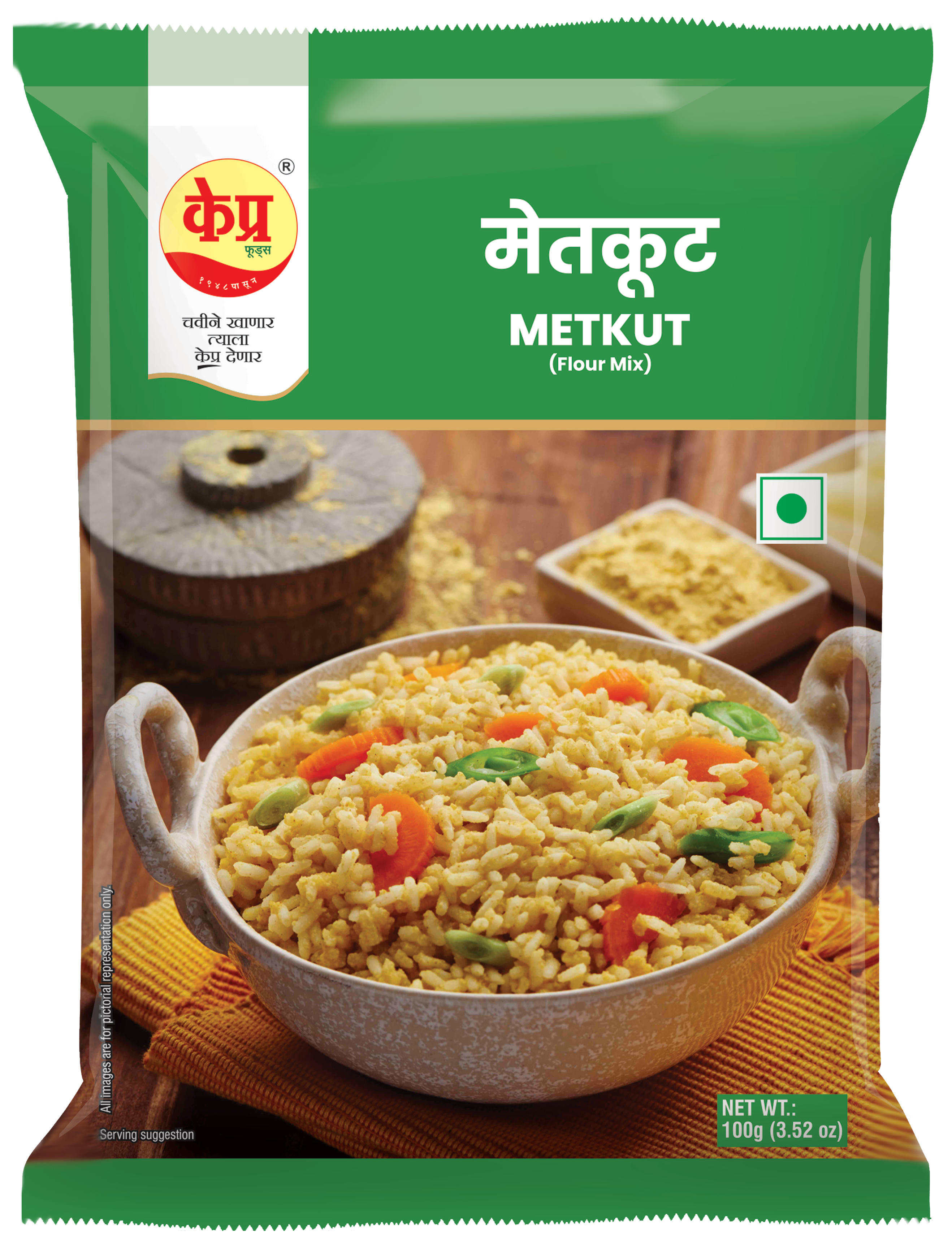 K-Pra Metkut is a healthy mixture of Pulses and grains that can be added to hot rice along with salt and ghee and consumed.